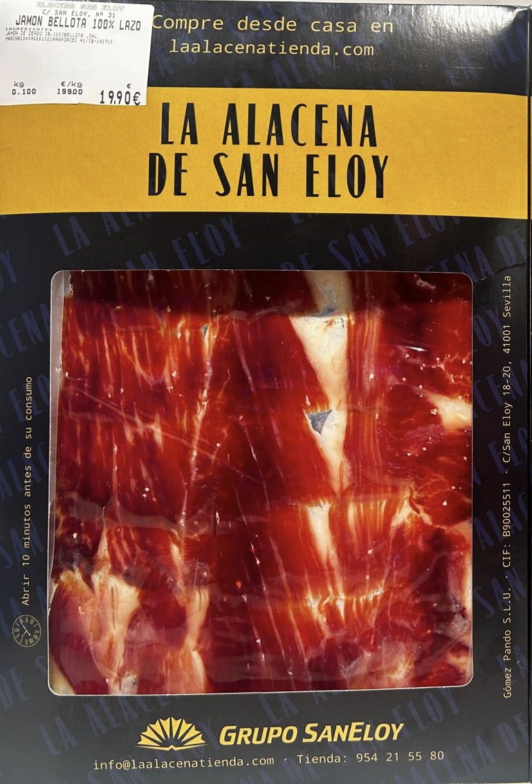 JAMÓN 100% IBÉRICO BELLOTA LAZO CORTE CUCHILLO PAQUETE DE 100GR.