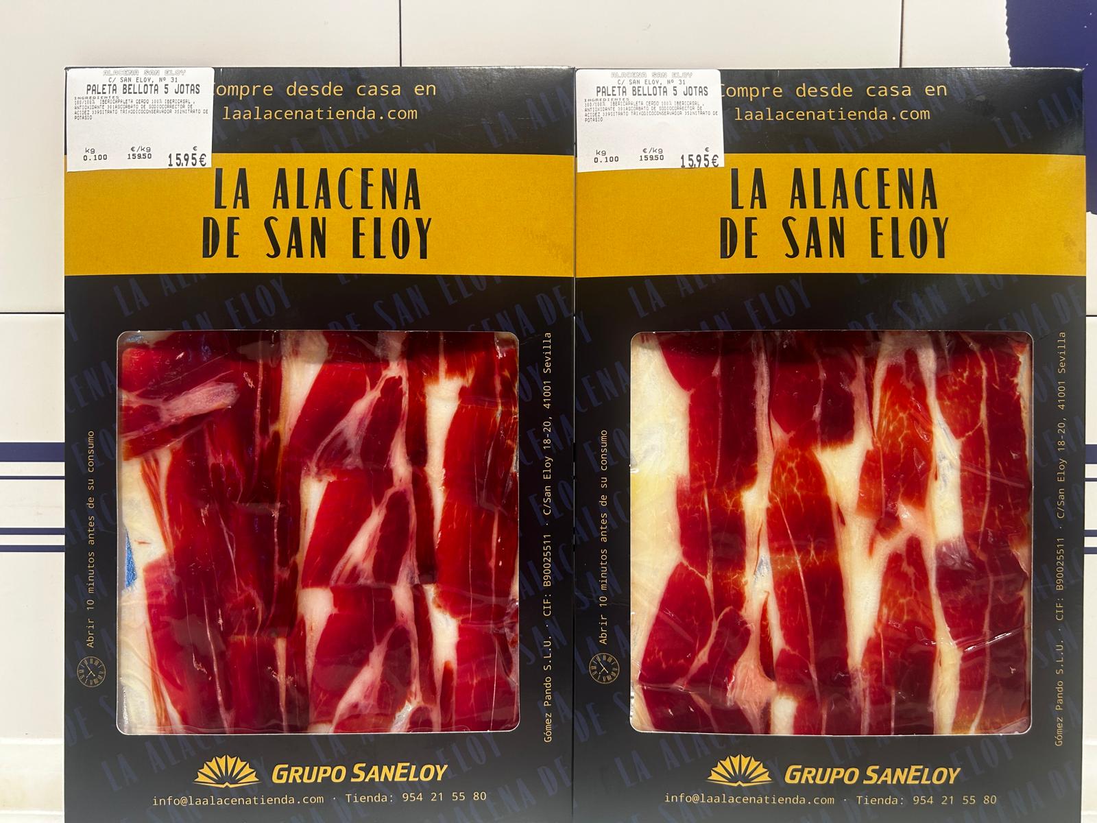 Ingredientes: paleta de cerdo 100% ibérica, sal marina, antioxidante E-301(ascorbato de sodio), corrector de la acidez E-331(iii)(citrato trisodico) y conservador E-252(nitrato de potasio).