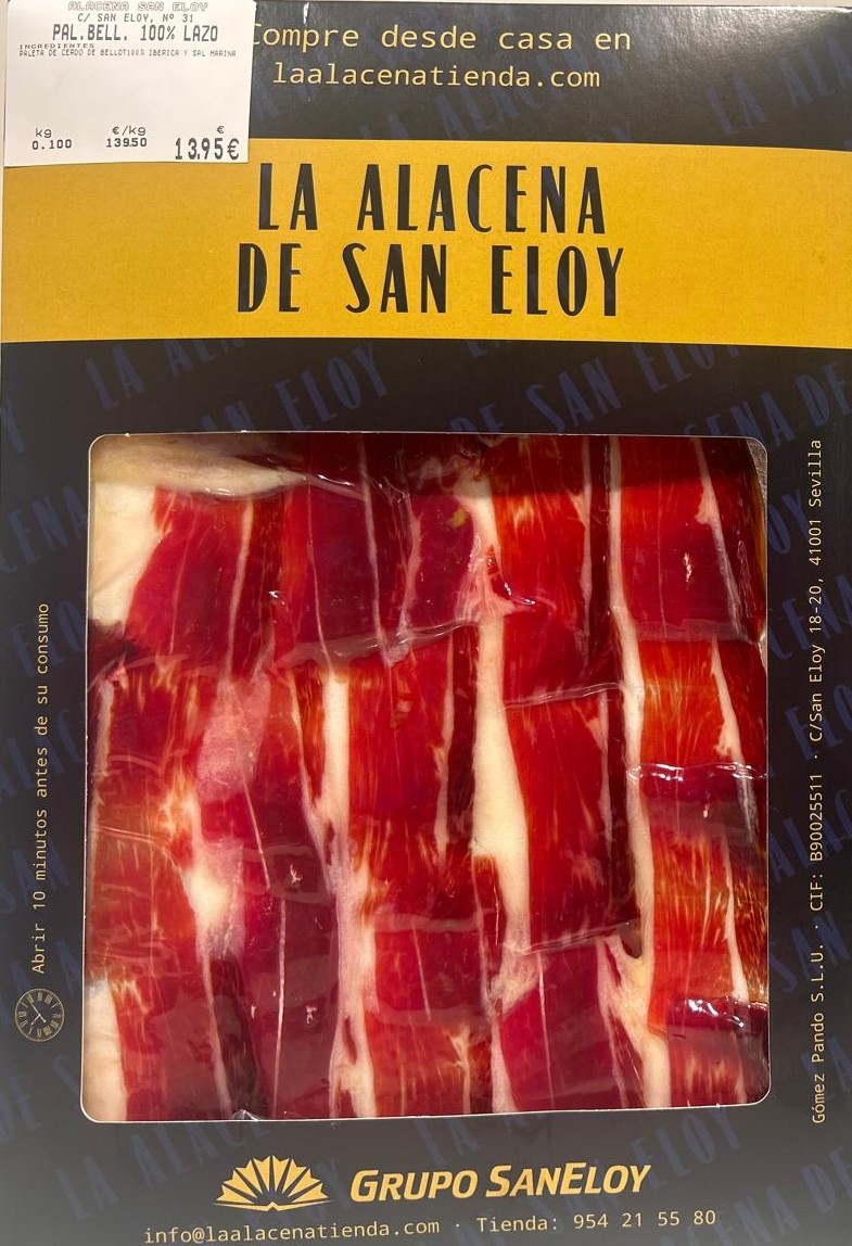 PALETA IBÉRICA 100% BELLOTA LAZO CORTE CUCHILLO PAQUETE DE 100 GR.